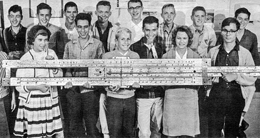Pasmona High Giant Slide Rule Club 1963. Top row L to R: Denny, Henri Robideau, Corky, Dinky, Broady, Davey, Cregy, Guy Saint Pierre Beauchemin.