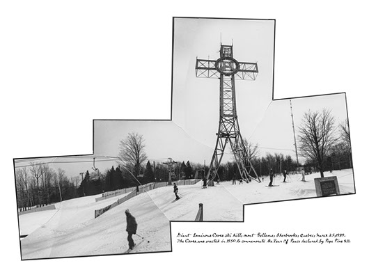 Giant Luminous Cross ski hill, mont Bellevue, Sherbrooke, Quebec, March 25, 1989. The Cross was erected in 1950 to commemorate the Year Of Peace declared by Pope Pius X11.