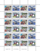 Self published perforated sheet of 24 Artiststamps, 8.5 inches x 11 inches, full colour Canon laser print. Edition of 100 signed copies, 50 of which are on gummed paper numbered 0001 to 0050, 50 on plain paper numbered 0051 to 0100. Distributed with black and white information sheet, black interleave paper and enclosed in a three ring notebook sheet protector. Selling price at time of edition$19.95.